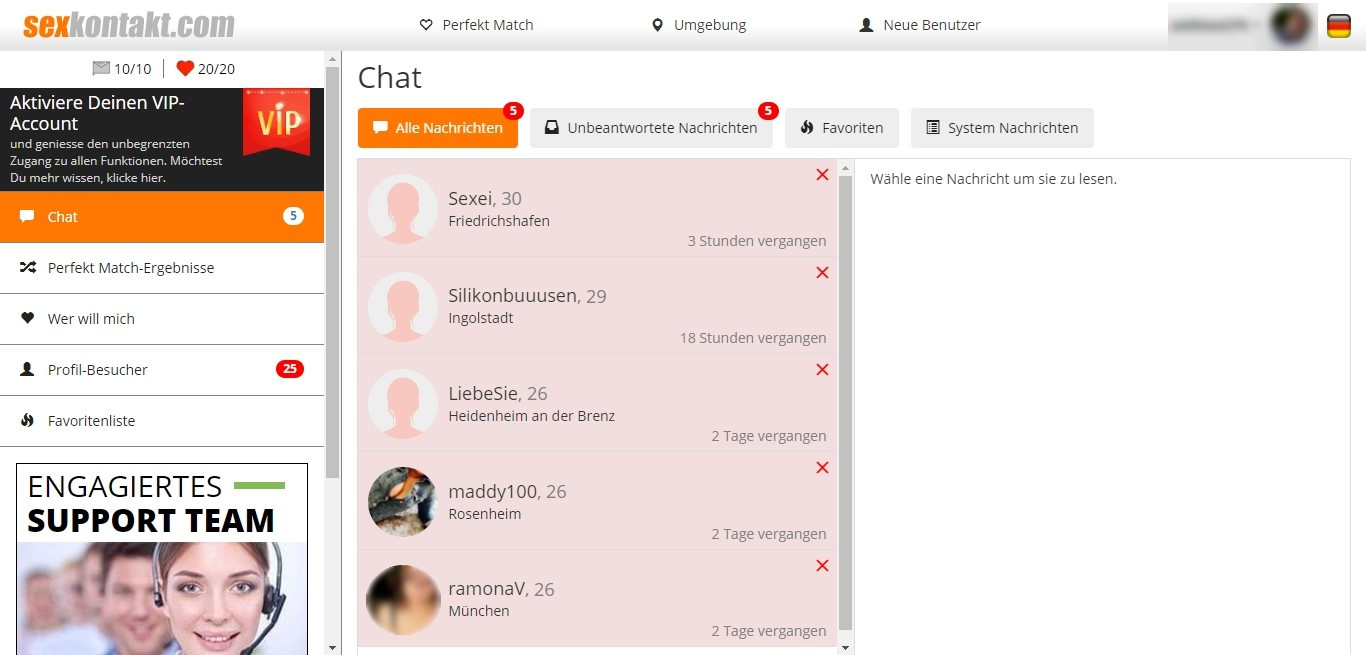 Sexkontakt bietet uns genau wie alle anderen Dating-Seiten Tools, mit denen man erfährt, was in der Gemeinschaft los ist. Im Chat-Tab gibt es die üblichen Untermenüs wie „Nachrichten“, „ungelesene Nachrichten“, und „Meine Favoriten“. Es gibt aber auch die „Hotlist“, in der man die beiden Listen „Wer will mich“ und „My Hotlist“ findet. Dadurch erfährt man, in wessen Hotlist man ist und wer in unserer ist, damit die interessantesten Kontakt leicht zu finden sind.
