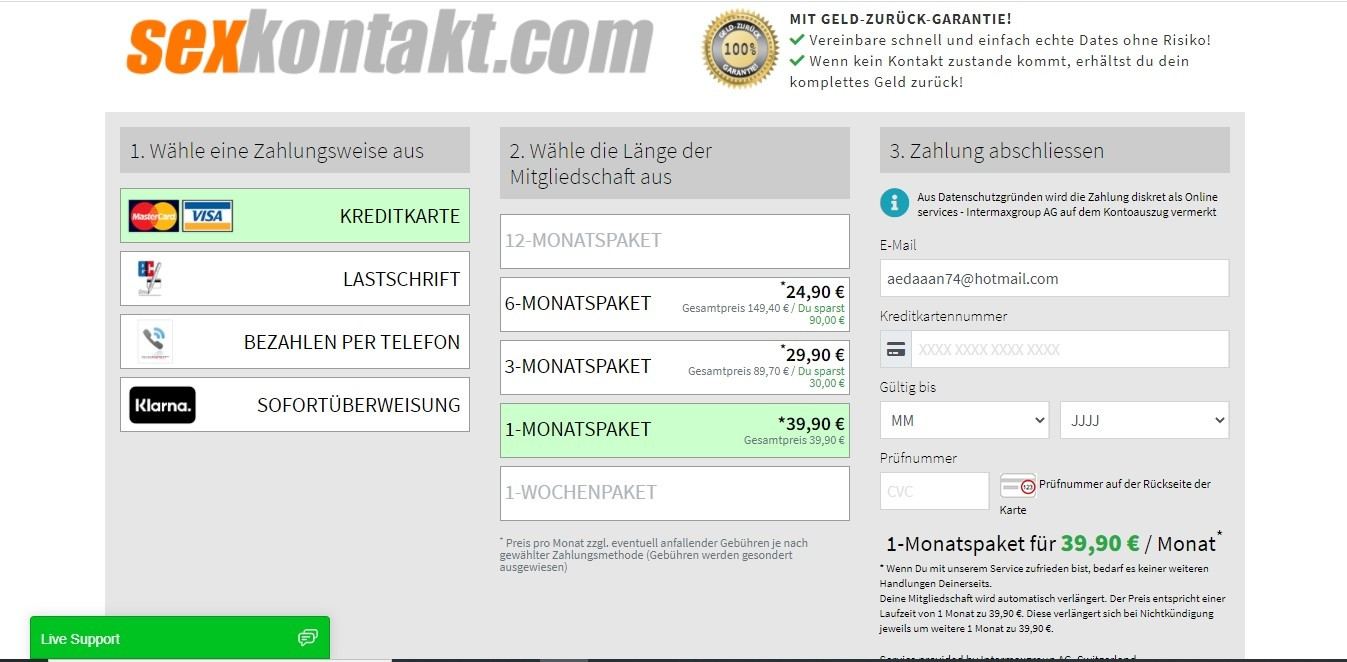 Die Abonnements sind teurer als bei anderen Sexdate-Seiten, die wir getestet haben. Es ist jedoch sehr angenehm, nicht in der Menge der Nachrichten eingeschränkt zu sein, die man austauscht. Im Gegensatz zu anderen erotischen Datingseiten gibt es kein weiteres Zahlsystem zusätzlich zum Abonnement. Wenn man dies berücksichtigt, meinen wir beide, ist Sexkontakt preislich nicht zu hoch angesetzt.