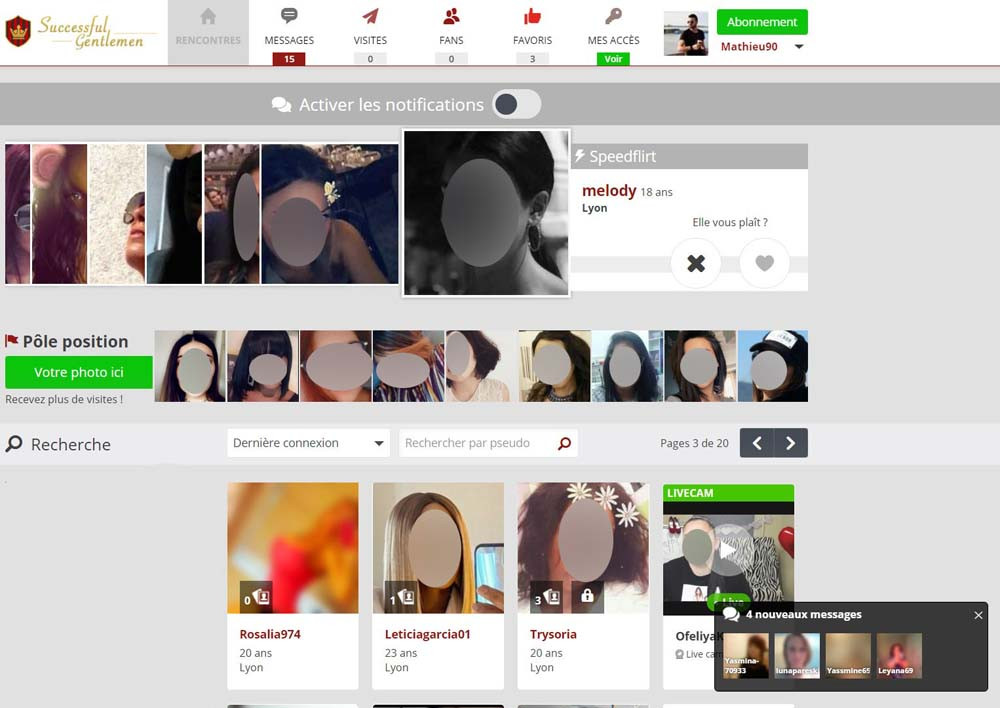 Je venais de me séparer lorsque je me suis inscrit sur Successful Gentlemen. J’avais entendu dire que les femmes inscrites étaient particulièrement jolies et qu’on pouvait facilement faire des rencontres. J’ai effectivement rencontré une nana qui me plait, avec qui on passe de très bons moments !